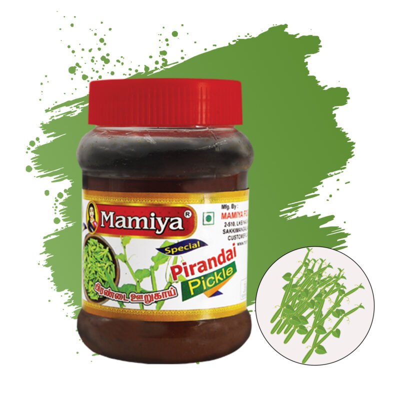 A traditional herbal preparation made from fresh pirandai stems blended with natural spices and pure oil. Known for supporting bone health and digestion, it offers an authentic homemade taste and pairs well with rice, ghee, curd, and daily meals.