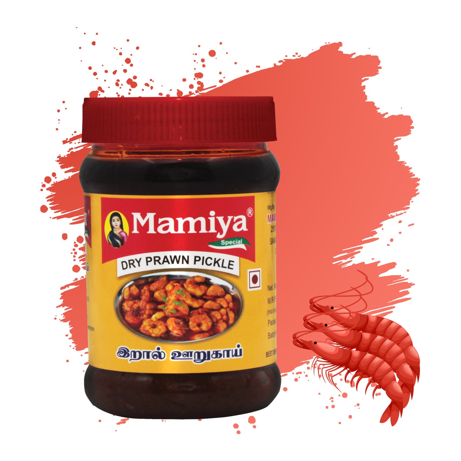 Mamiya Special Dry Baby Prawn Pickle is a traditional South Indian delicacy made from premium dried baby prawns, carefully cleaned and blended with authentic spices and pure oil. Packed with protein and rich in flavor, it offers a tangy, spicy, and aromatic taste that enhances any meal. Prepared using time-tested methods and free from artificial colors or preservatives, this pickle delivers the authentic homemade taste of coastal cuisine. Perfect to enjoy with hot rice, curd rice, dosa, idli, or as a flavorful side dish for everyday meals.