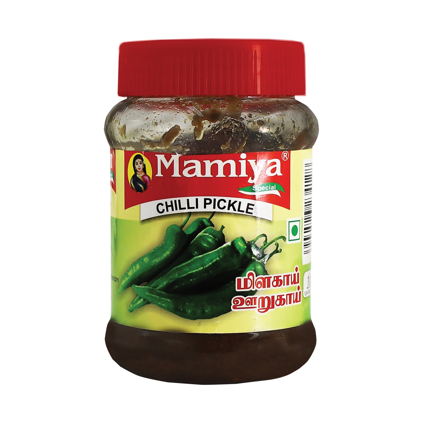 Mamiya Special Green Chilly Pickle is a traditional South Indian pickle made from fresh green chilies, blended with authentic spices and pure oil. Bursting with tangy, spicy, and aromatic flavors, it adds a fiery kick to any meal. Prepared without artificial colors or preservatives, this pickle pairs perfectly with hot rice, curd rice, dosa, idli, or as a zesty accompaniment to everyday meals.