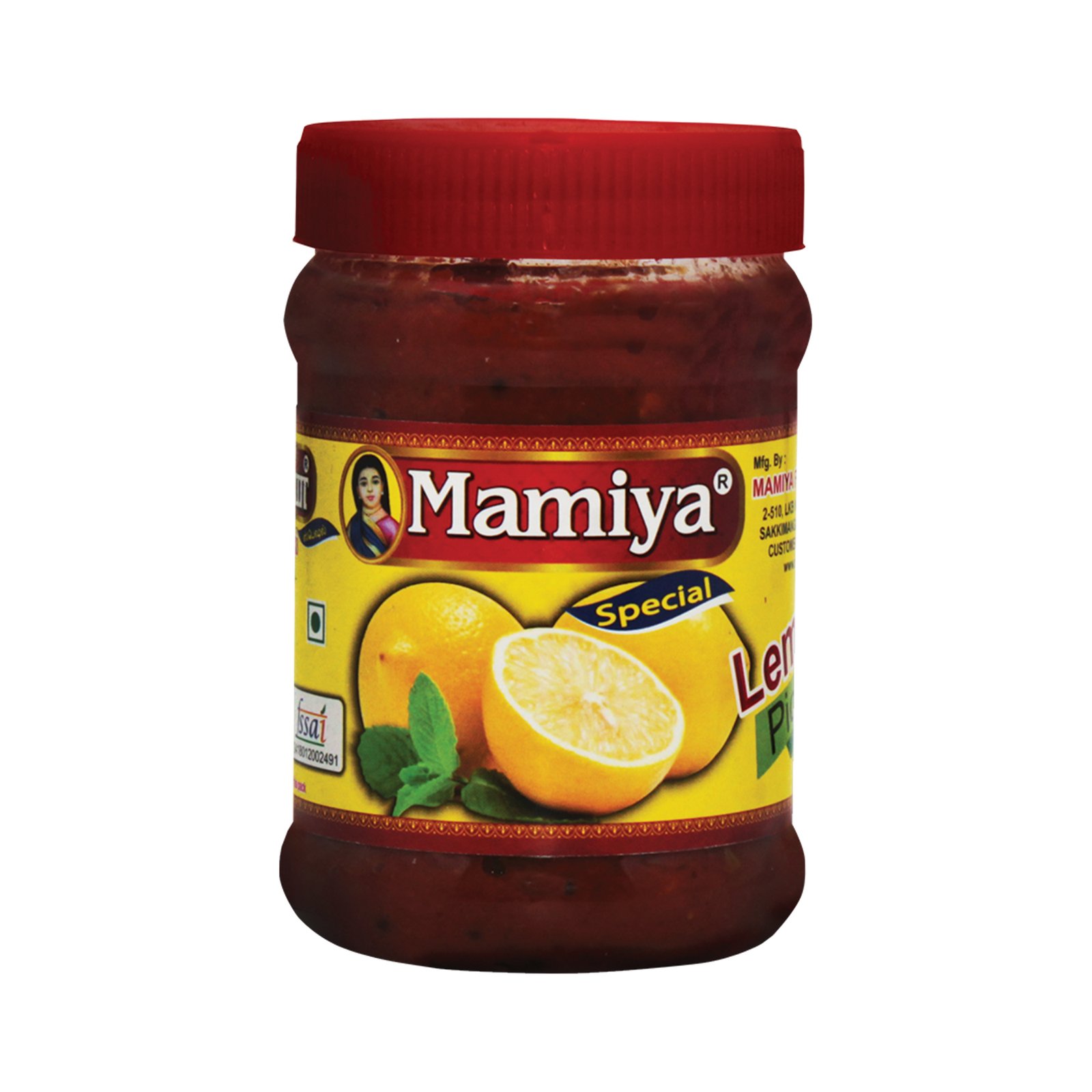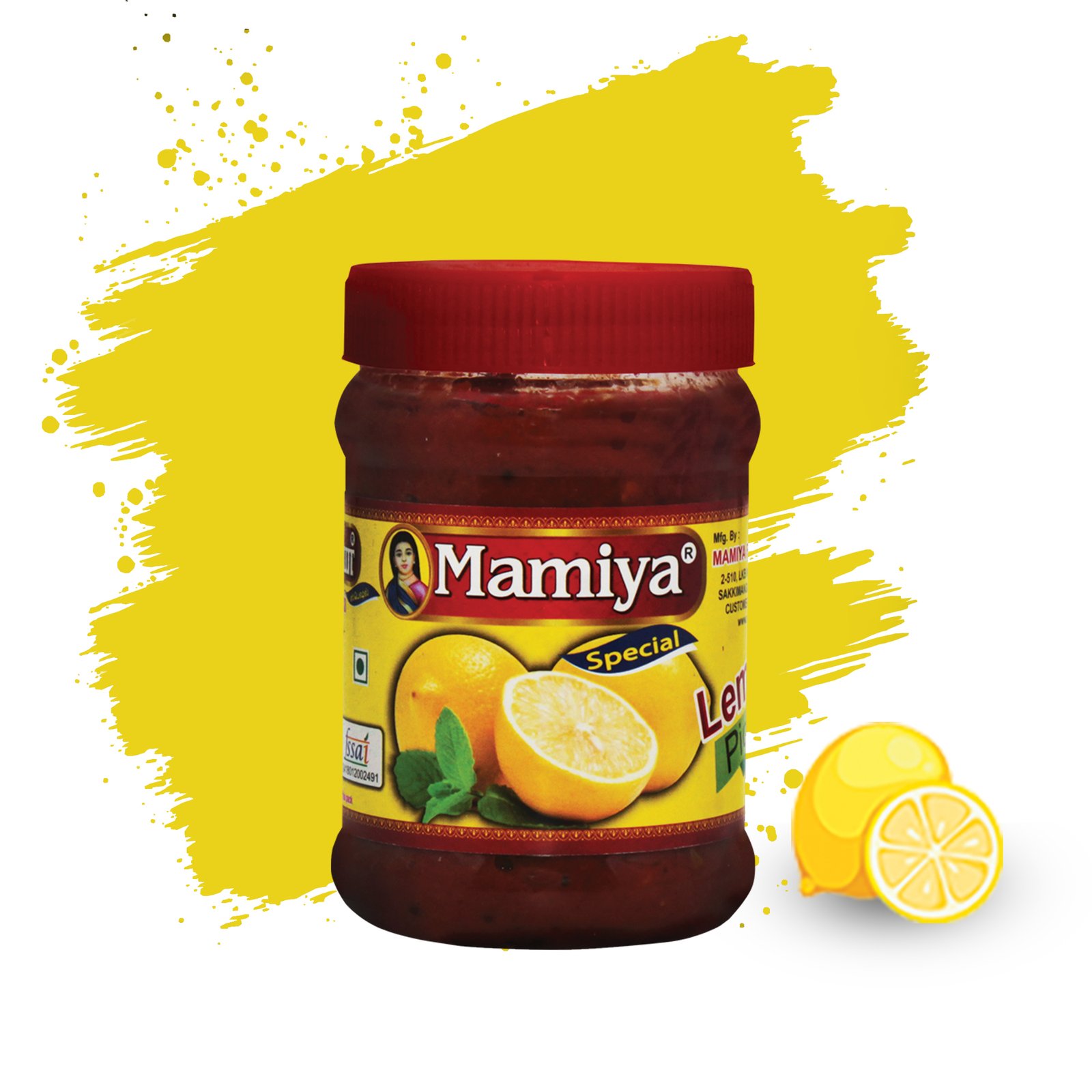 Mamiya Special Lemon Pickle is a traditional South Indian pickle made from fresh lemons, carefully blended with authentic spices and pure oil. Bursting with tangy, zesty, and mildly spicy flavors, it adds a refreshing punch to any meal. Prepared without artificial colors or preservatives, this pickle pairs perfectly with hot rice, curd rice, dosa, idli, or as a flavorful accompaniment to everyday meals.