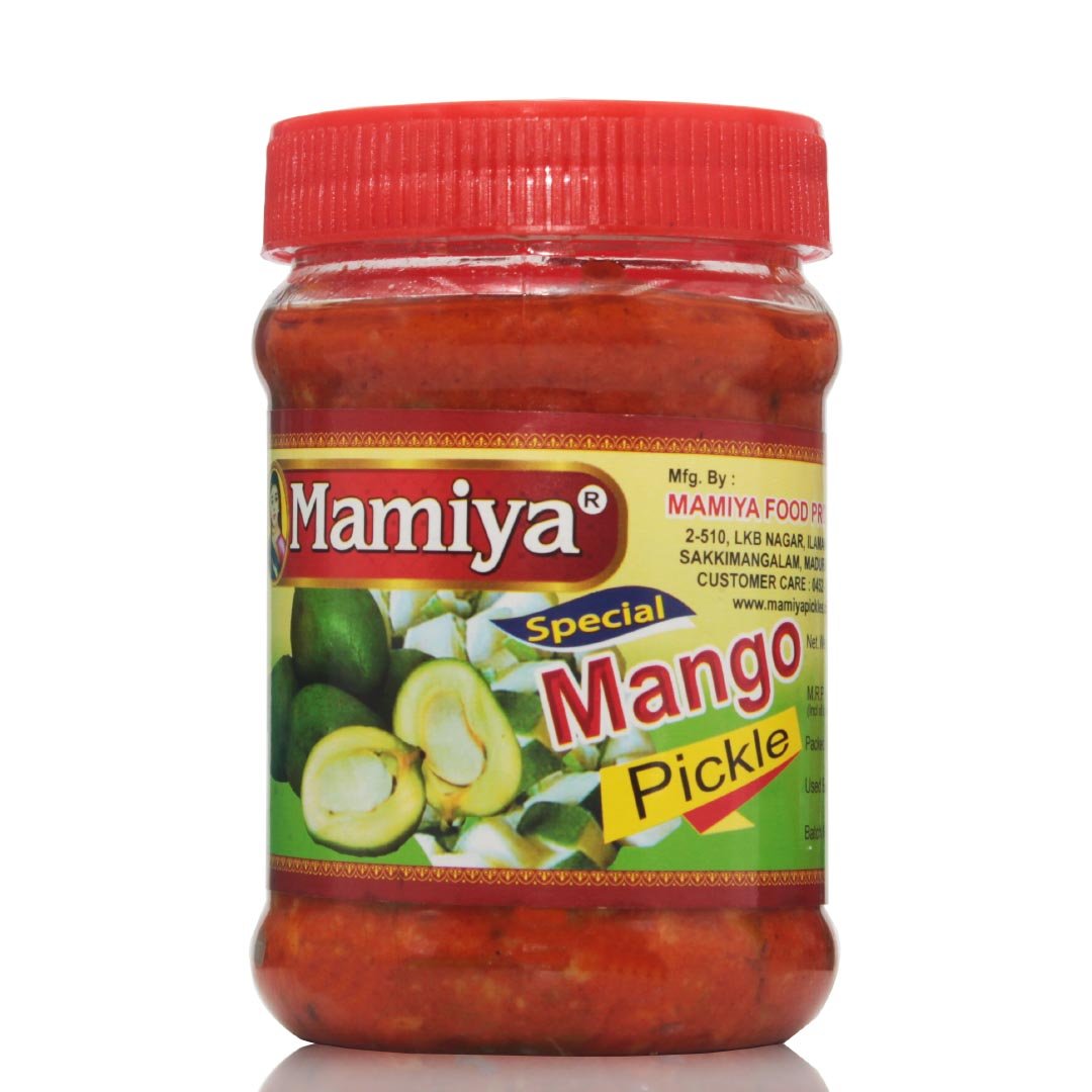 Mamiya Special Mango Pickle is a traditional South Indian pickle made from handpicked raw mangoes, blended with authentic spices and pure oil. Bursting with tangy, spicy, and aromatic flavors, it enhances the taste of every meal. Prepared without artificial colors or preservatives, this pickle pairs perfectly with hot rice, curd rice, dosa, idli, or as a flavorful accompaniment to everyday meals.